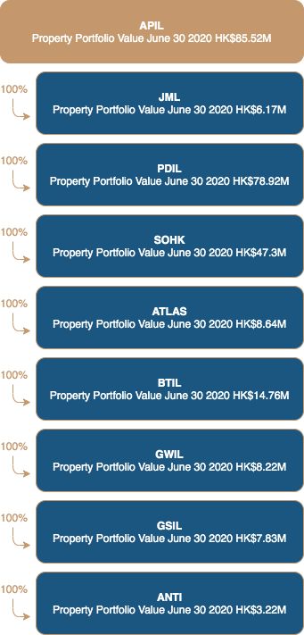 APIL has 8 subsidiaries – Joyful Max Limited (JML), Pearl Dragon Investments Limited (PDIL), Surplus On (HK) Limited (SOHK), Atlas Property Services Ltd (ATLAS), Best Town Investments Ltd (BTIL), Good Sail Investments Ltd (GSIL), Good Wind Investments Ltd (GWIL) and Antipodes Real Estate Ltd (ANTI)